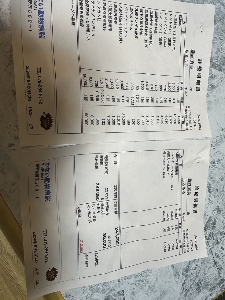 今回の手術治療費です