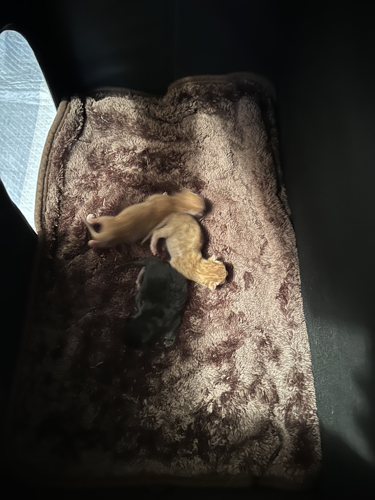 今朝確認したら茶トラ2匹とクロ1匹でした🐱