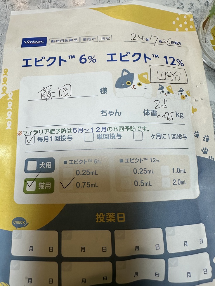 今日はチルチル4兄妹のうちチルチル以外のみちる、おでこちゃん、小太郎、そして緊急保護したテル君の4匹に駆虫薬しましたょ