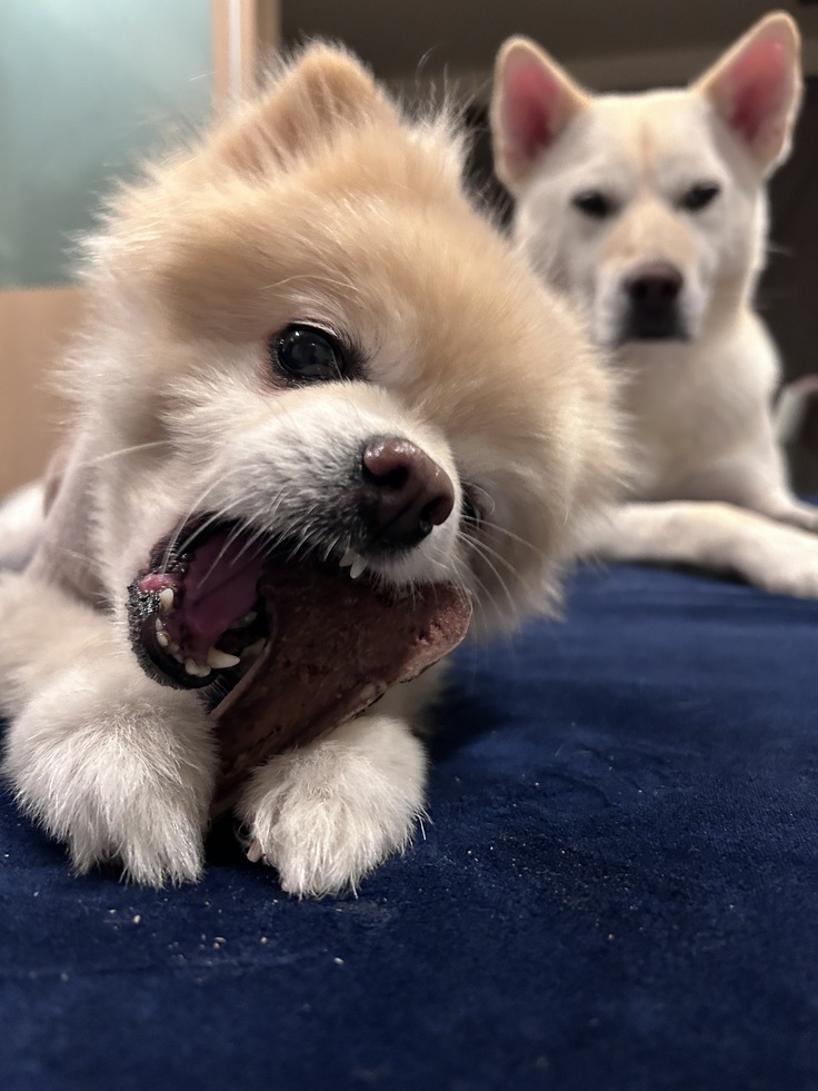 この骨系おやつのおかげで、大きな歯石はだいたい噛むことで取れました。