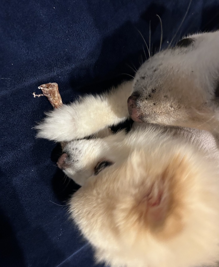たくさんの種類のお薬を口に突っ込んで飲ませないとならないのですが、「お薬頑張って飲んだね」のご褒美でチーズや柔らかいジャーキーをあげているおかげで、薬もすんなり飲んでくれています。