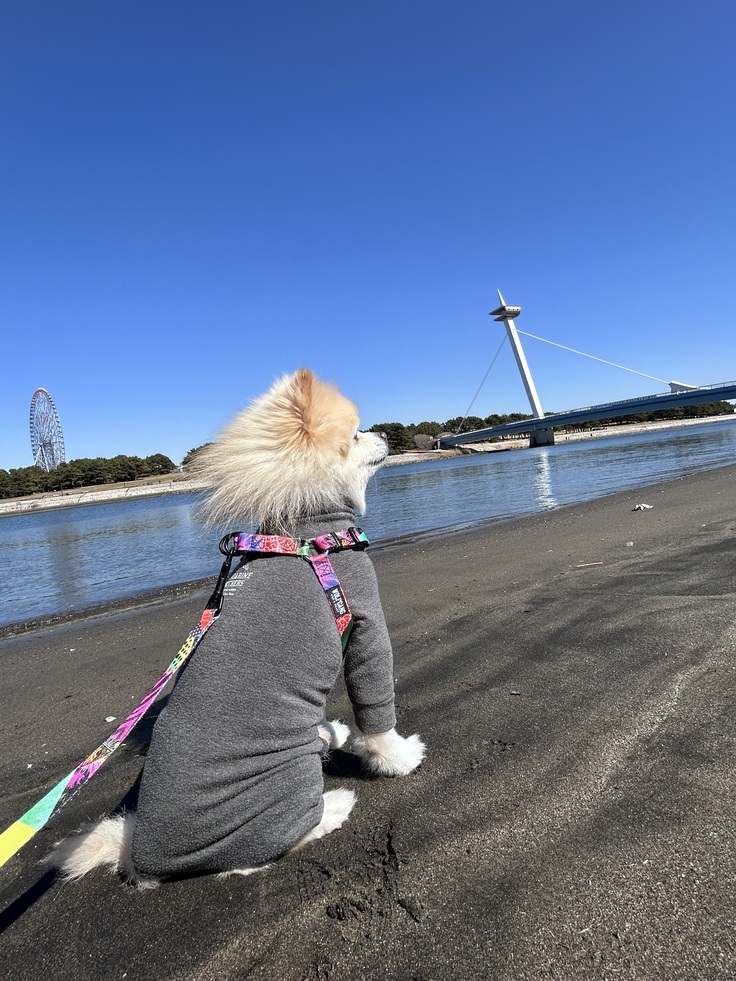 右側の橋を渡って海浜公園へ遊びに行くところです。