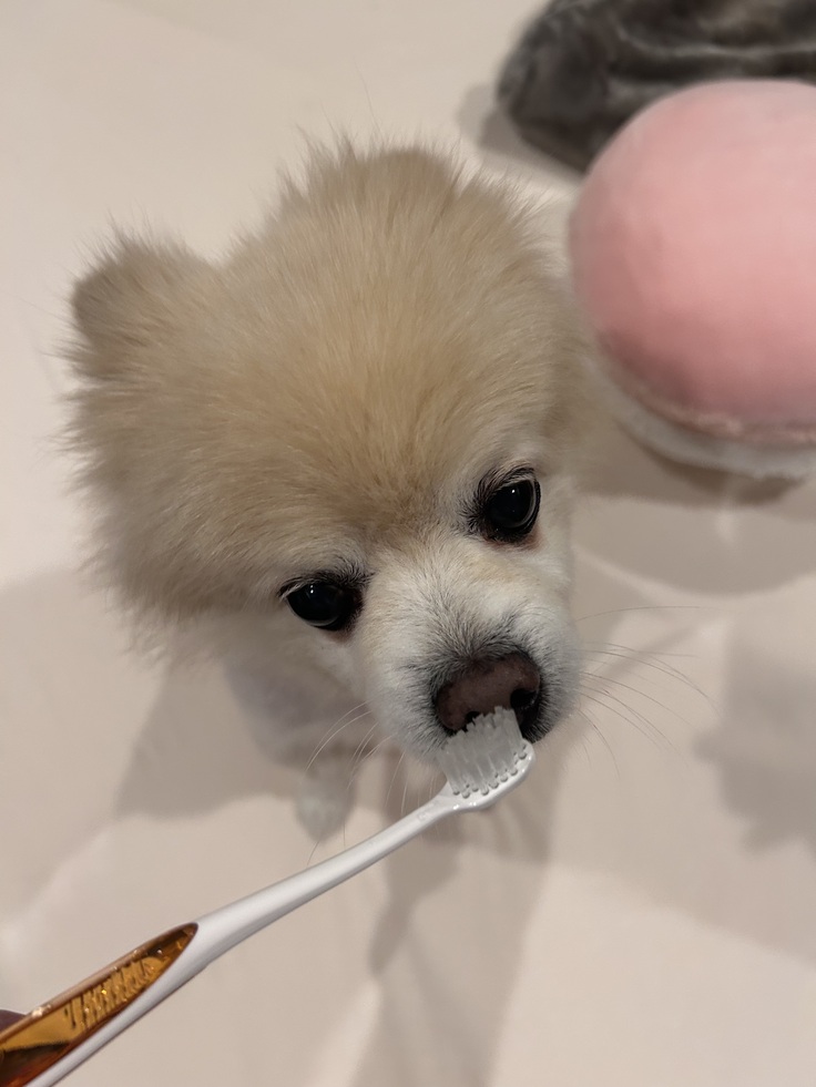 前歯と横の歯を、外から届く範囲しかできませんが、歯茎まで、今以上悪くしたくなくて2人(クッキーと私)で頑張っています。