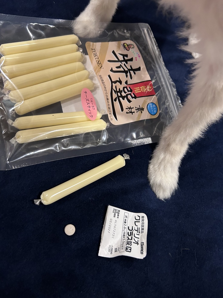 今はまだ投薬が必要なので、この細長いタイプの特選チーズを使っています。