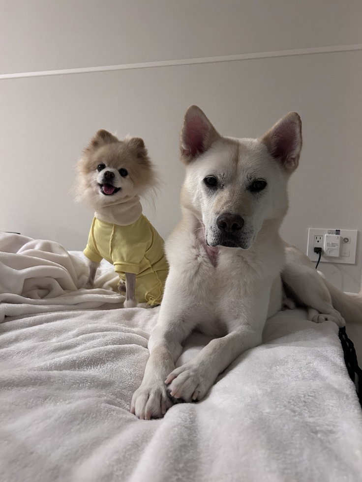 家ではスノーボールや猫の餌を食べたがり、僕も散歩に行きたいと騒いだりもしました。