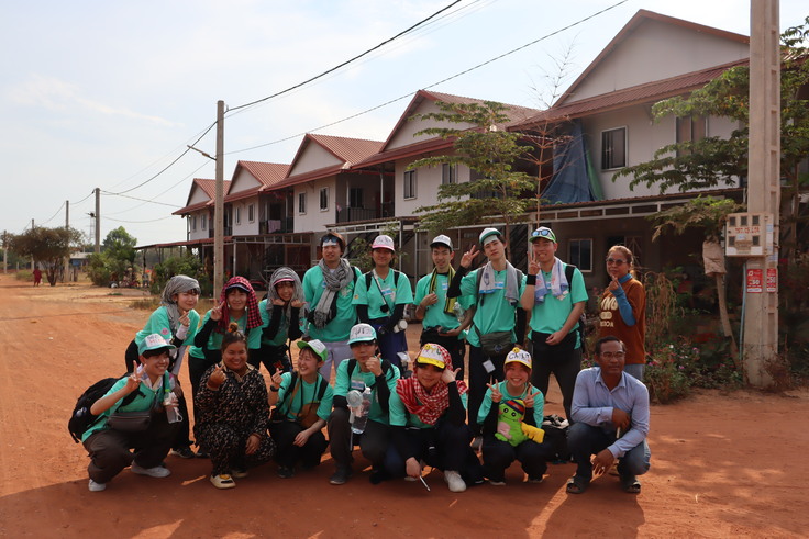 半日ワークした後は、わたしたちの活動の親団体であるHabitat for humanity のカンボジア支部とカンボジア政府が合同で創った、公園や運河などに住んでいた集落の人々に新しいお家を提供しているコミュニティを見学させていただきました。そこのコミュニティを管理している方に、コミュニティのルールや、世帯数などの基本情報、また、幹部の方々がどのようなことを取り組んでいるのかについて詳しくお聞きしました。今回のお話を通して、Habitati for humanity cambodiaの活動の素晴らしさや普通の生活をするのにも大変な環境で暮らす人たちがいることを再認識することができました。