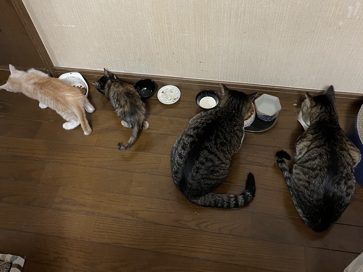我が家には先住猫がいる為、迎え入れた当初は先住猫2匹がシャーシャーフーフー大騒ぎでこの先が心配でしたが、我が家に迎えると決めた家族ですから大事に育てて行こうと、4匹猫との生活がスタートしました。