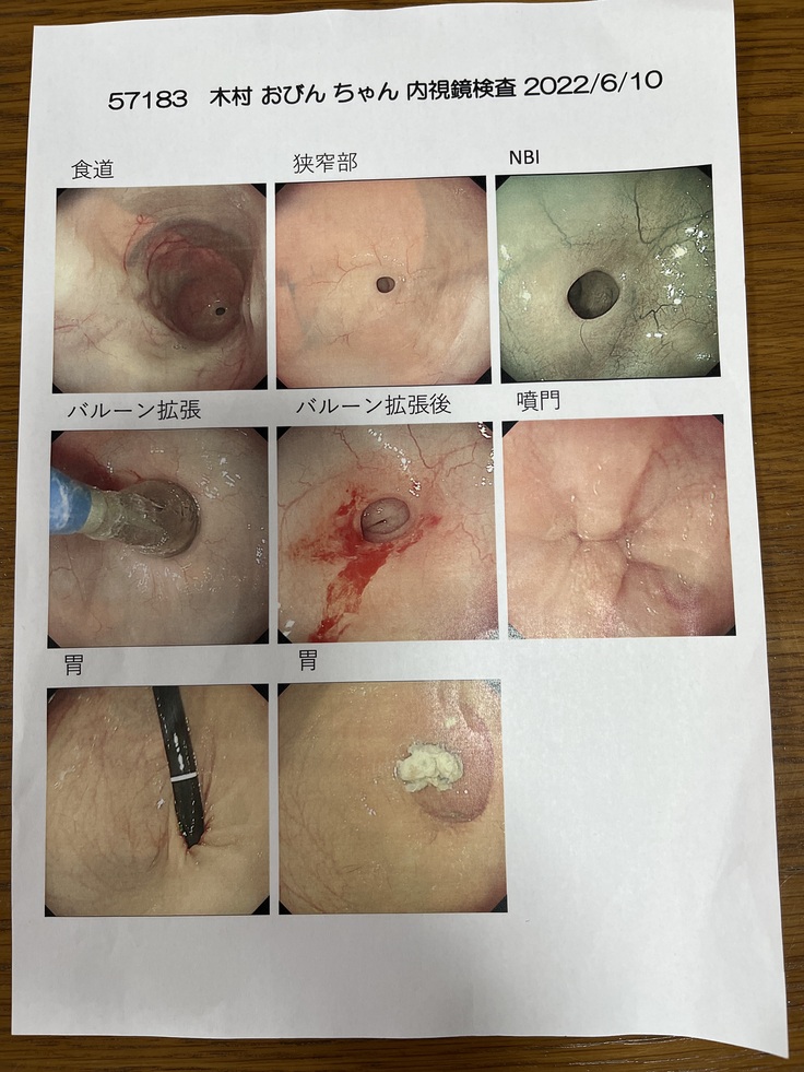 結果、2回のバルーン拡張術で狭窄部は以前より少し広がってきてはいるが、食道の拡張部は今のところ変化が見られないとのことでした。