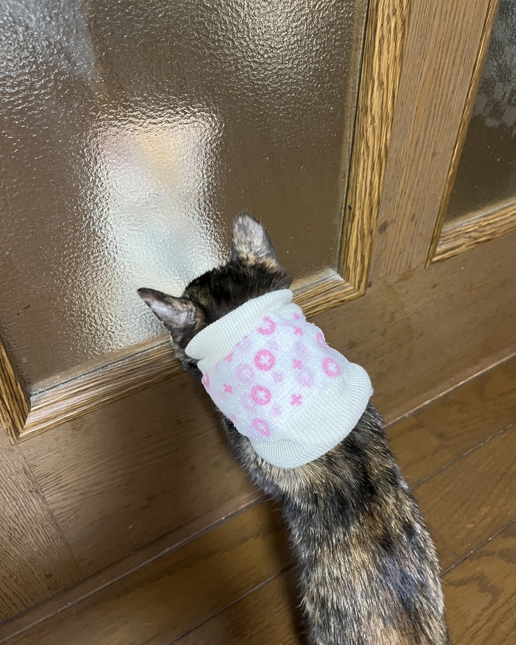 食道チューブ設置中の生活はさらに予想しなかったことが起こることを再認識する事故でした。大事に至らなかったからよかったものの、このままオビンを失ってしまうかもしれない怖さで、救急病院に向かう道中は、とても長く感じられました。