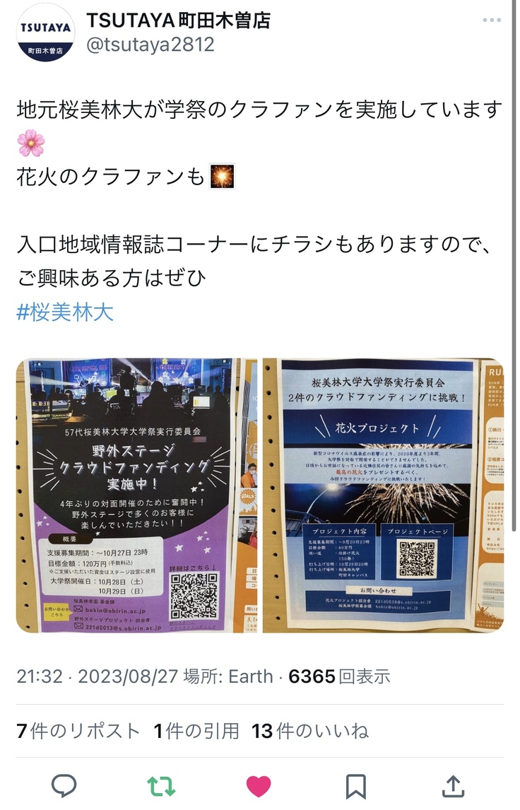 TSUTAYA町田木曽店様に、クラウドファンディングのチラシを掲載させていただきました!