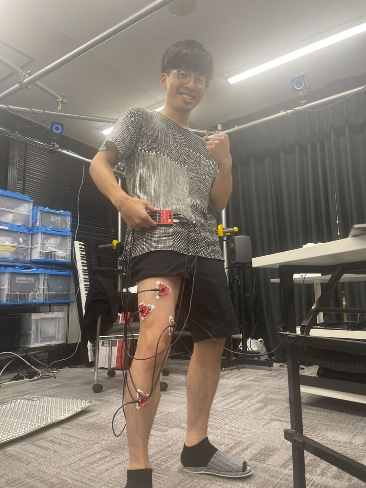 サイボーグのように機械をペタペタとつけてスポーツをすることで、よりパフォーマンスが上がったり、運動の上達は個人差が多く、いわゆる「スポーツ音痴」という個人差を解消できたらと思いながら日々研究しています。