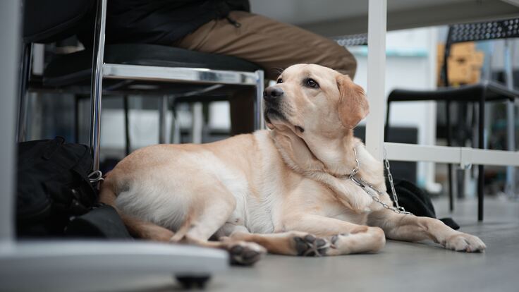 松村: 実際やってみましょうか。「チェアー」と指示をすると、ジャガーが空いている席に顎を乗せて知らせてくれます。ただ、時々間違えて知らない人の膝の上に顎を乗せることもあるので、その時は少し恥ずかしいですね(笑)。