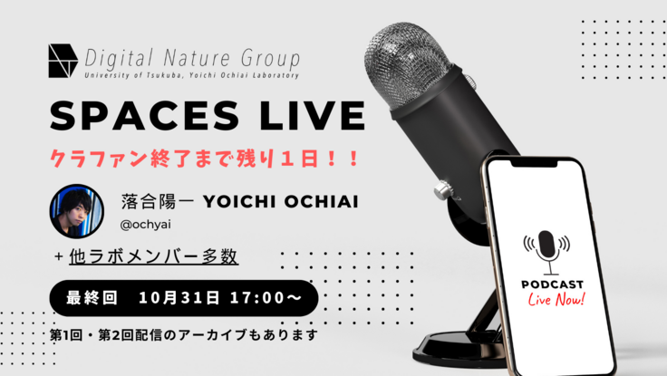 10/31(火)17:00〜:https://twitter.com/i/spaces/1vAxRvZqVprxl