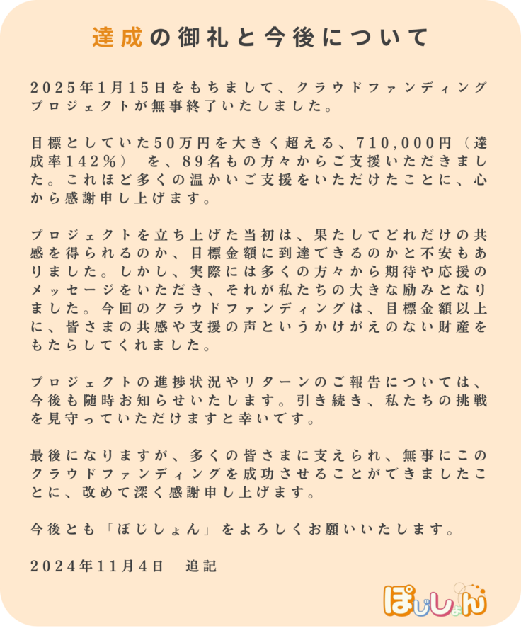 ■ ぽじしょんメンバーから感謝を込めたお礼のメールをお送りいたします