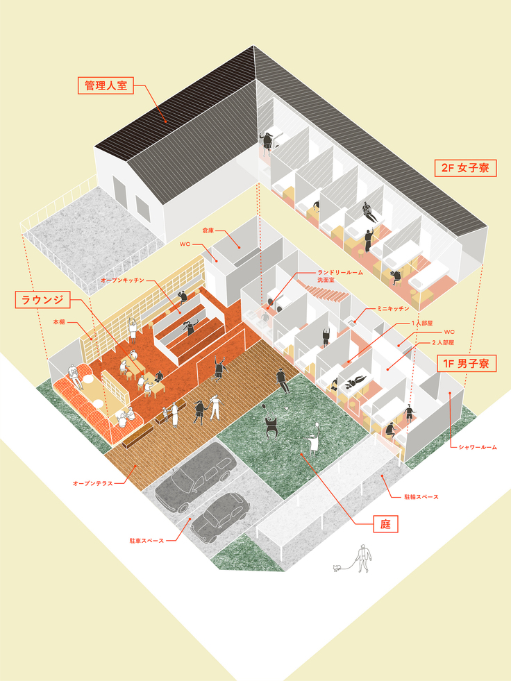 次世代の学生達にも、私が享受した当たり前の学生生活を提供したいという強い想いから、学生寮の新築を計画しました。今回の計画では、個人の下宿経営とは異なり、法人による持続可能な運営を行うことで、地域に雇用を生み出し、学生に安定した住まいを継続的に提供していく事を目指しています。