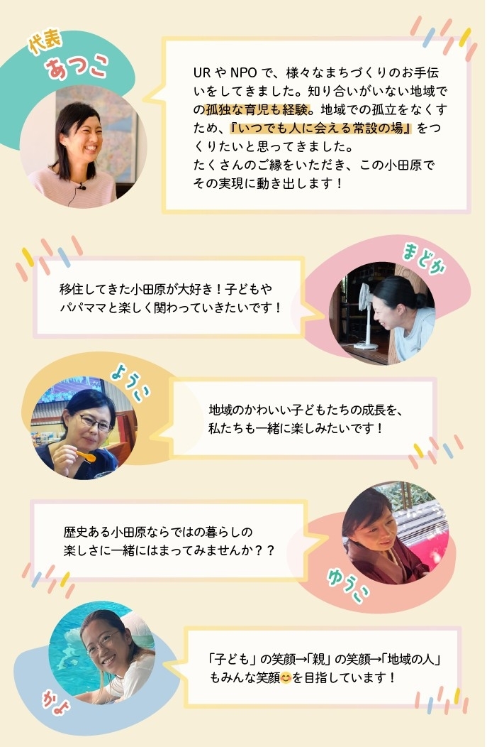 この居場所が、小田原で育つ子どもたちのあたたかい未来につながるものと信じています。