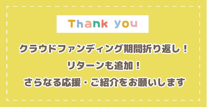 たくさんのご支援や応援コメント、周りの方へのお声がけ、SNSでのシェアなど、本当にありがとうございます。