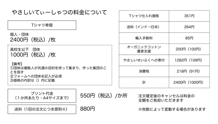活動を通して作り上げた「やさしいてぃーしゃつ」はまさにそんな思いを実現させるものでした。