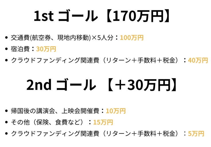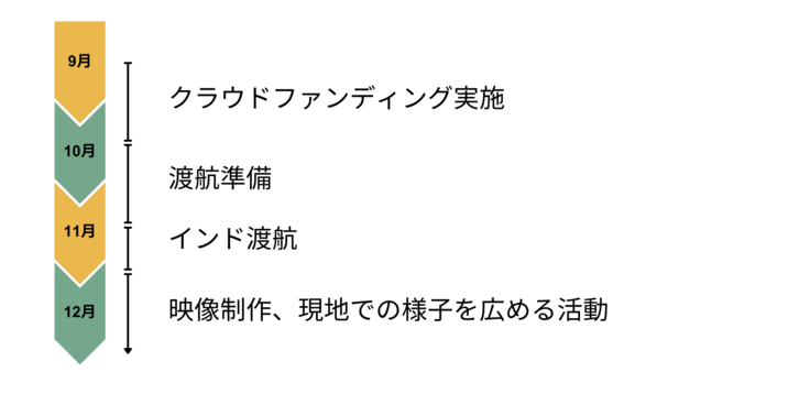 ※プロジェクト成立後、天災等やむを得ない事情(緊急事態宣言などコロナウイルスによる影響を含む)により渡航が開催できなかった場合、渡航日程を延期いたします。