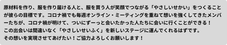 「人にも環境にもやさしい服が無いなら、自分たちでつくればいい。」