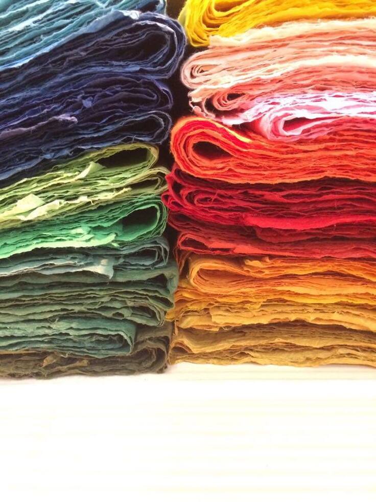 製品のベースになる紙は、原料を染めることで均一に色がついた紙となる「民芸紙」。