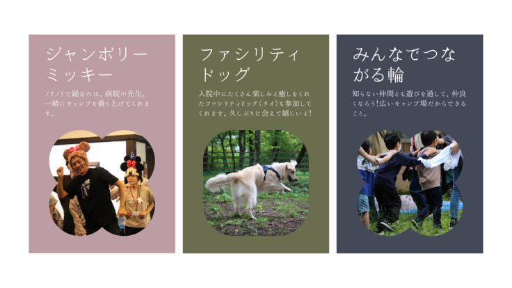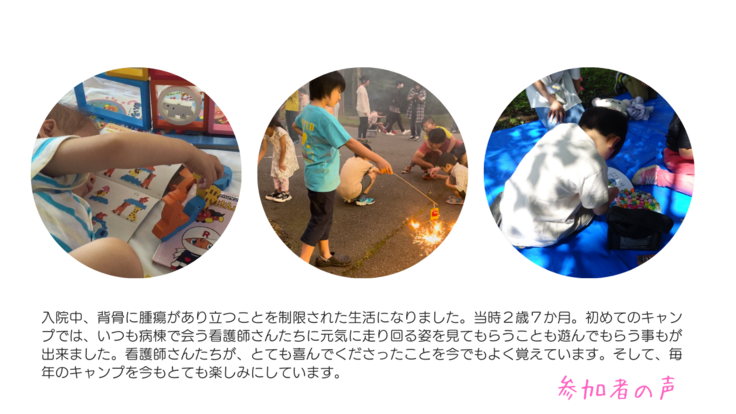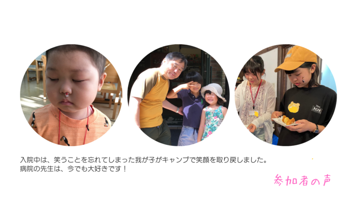 私たち役員も同じ時期の入院ではない数名が今こうして、キャンプを通じて知り合いOhanaになっています。そして、この企画をご支援下さる支援者様もまたOhanaの一員だと思っています。