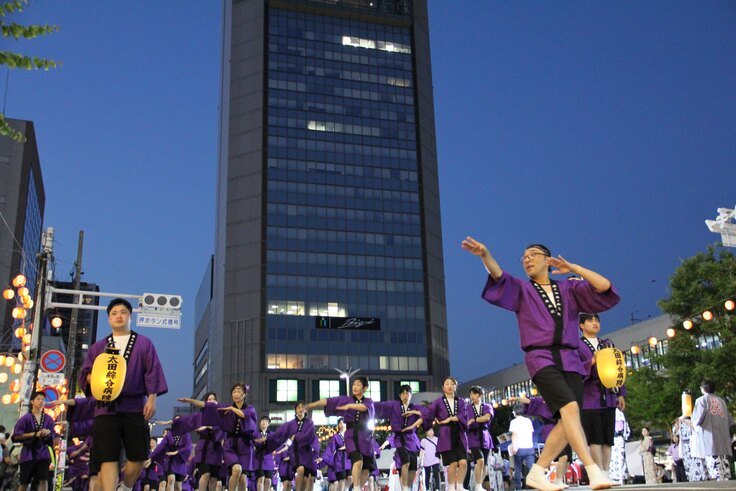 祭りの中心を飾るのは、郡山駅前大通りを舞台に繰り広げられる「うねめ踊り流し」。色とりどりの衣装に身を包んだ市民や団体が踊りの輪を広げ、太鼓や笛の音が街中に響き渡ります。その姿は、郡山の活力と連帯を象徴する光景です。参加者は年々増え続け、近年では踊り手4,000人以上、観客10万人を超える盛況を誇ります。