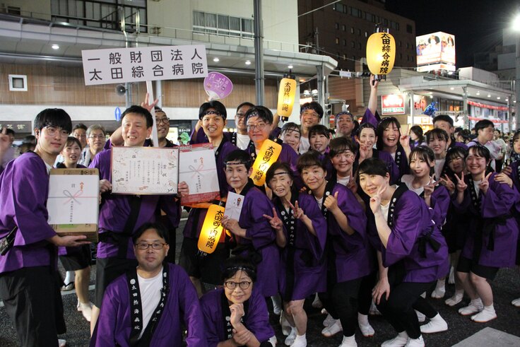 太田綜合病院は今年で創設130周年を迎え節目の年となりますが、職員一人ひとりのチームワークが実を結び、うねめまつり「踊り流し・大賞」という大きな栄誉をいただくことができました。この喜びを励みに、これからも結束を深め、地域の皆さまにより多くの笑顔と元気を届けていきたいと思います。
