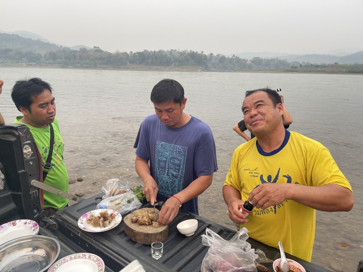 メコン川で裸の付き合いをし、何度も盃をかわし、腹を割って話をしてお互いを理解し合います。
