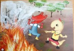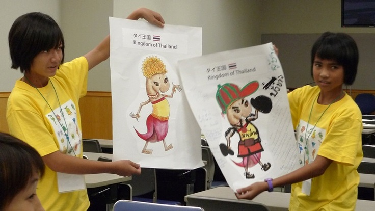 平成25年の「子どもゆめ基金」を活用させていただいて企業の方にもご協力いただき、タイの子どもたちにタイの動物のキャラクターを考えてもらったり、子どもたちの話や、実際の写真を元にしてプロの方に風景を描いていただいたりして、紙芝居を作成しました。
