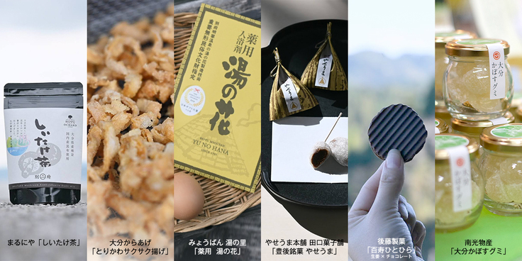 そしてもうひとつのメインコンテンツは、もちろんこちら。私たちが自信をもってお届けする大分のおみやげ6品です。今回参加する6社の多くはそれぞれに大分で長い歴史を誇り、県を代表する商品を製造販売している名店ばかりです。