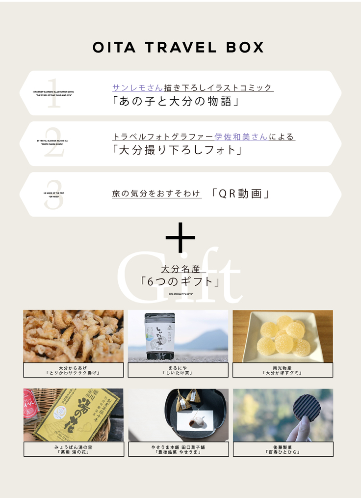 旅を自宅に!五感で楽しむ旅ギフト「OITA TRAVEL BOX」プロジェクト も残すところあと36日となりました。