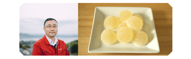 当社は別府に創業して53年目の菓子製造業者です。私どもの従事する観光業は、新型コロナウィルスによる経済被害で、これまでに経験したことがない状況に直面しております。そうしたなか、田口さんからお声掛けいただき、参加することに誠に感謝しております。当製品は職人の手作業で作られております。旅行を疑似体験する一助になれば幸いです。