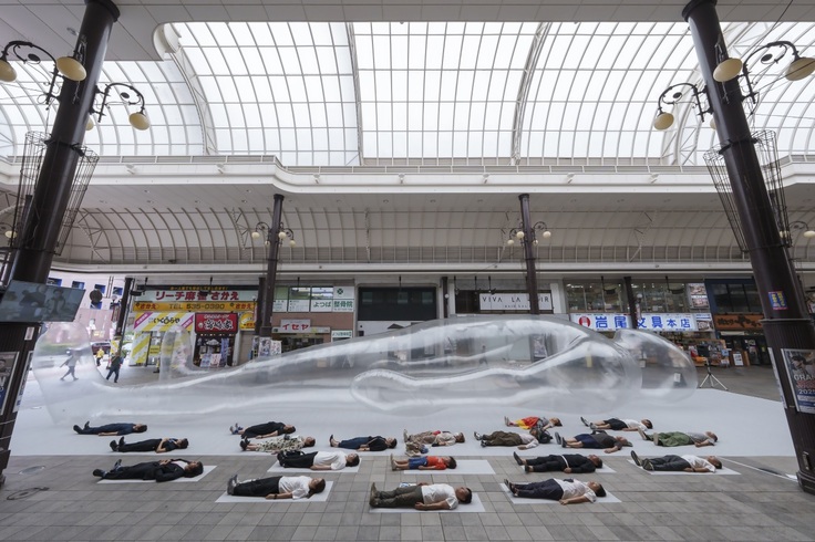 市民や来街者の憩いの場である広場に登場した巨大な『空気の人』に子どもからお年寄りで幅広い世代の方々にご覧いただき、写真撮影や触れて楽しんでいただくことができました。