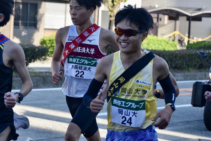 2区を走りました木戸です。まずはみなさまの盛大な応援ありがとうございました。沿道を見るとどこであっても応援してくれる方がおり、最後まで踏ん張ることができました。自分の走りとして全く納得がいくものとならず、悔しい思いです。チームとしても国公立最上位を逃してしまいました。今シーズン、全国で戦う舞台はもうありません。この悔しさを返すには来年も全国へ行くしかありません。今回の大会を良い経験とし、来年以降、全国で戦っていくための土台とします。これからも岡山大学陸上競技部の応援よろしくお願いします!