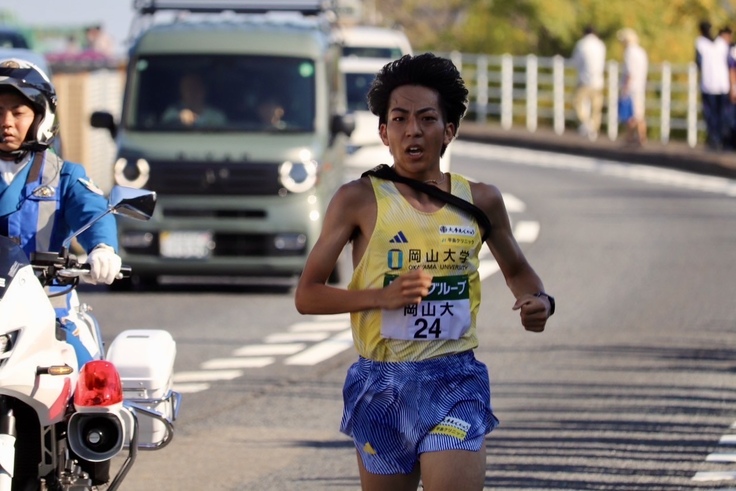 しかし、岡山大学が掲げていた「国立大最上位」を目指すにあたり、自身の区間で前を行く大学との差を大きく詰められたことに関しては、少しでもチームに貢献できたのではないかと感じています。最後に抜ききれなかった部分など、まだまだ弱い部分はあるので、次に控える中四国駅伝では、必ず優勝し、大学陸上を最高の形で締めくくりたいと考えています。まだまだ成長していく後輩たちに、最高の置き土産ができるように、残り短い期間ですが、最大限の準備をしていきます。