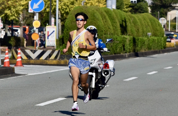 アンカーとして岡山大学初の全日本大学駅伝を締めた福永。この一年間チームを引っ張ってきた福永にしか務まらない役割だと感じさせる気迫のこもった走りだった