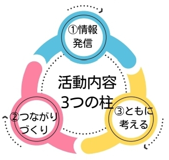 「話す会」終了後もこのつながりを大切にしたいとの思いから、参加した当事者保護者・市議の一部が中心となり「おかえり知多」という団体としての活動を継続することにしました。活動内容は①情報発信、②つながりづくり、③ともに考えるの3つを柱としていきます。