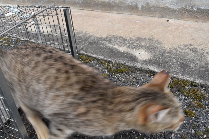 離島には2人の餌やりさんがいます。その内の1人が、昨年5月のハートにゃんこT.N.R.の後、周囲の理解が得られず、不妊化手術を終えた猫への餌やりを禁止されてしまいました。その方曰く不妊化手術を終えた猫たちは人に懐くようになるので、ご飯をあげられないことが辛い、なのでT.N.R.には参加しない、という方針に変更になりました。
