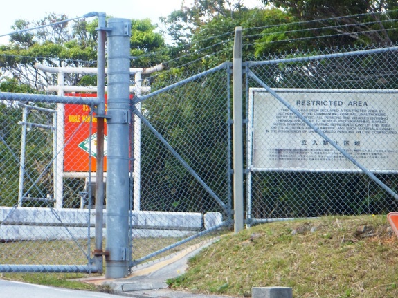(高江の豊かな森を囲む米軍北部訓練場のフェンス)