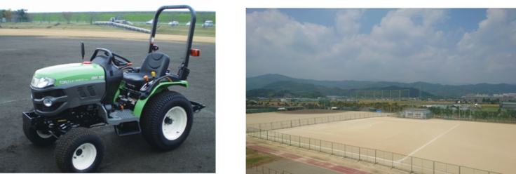 【購入トラクター(イメージ写真)】 【トラクターで整備を行うグラウンド】