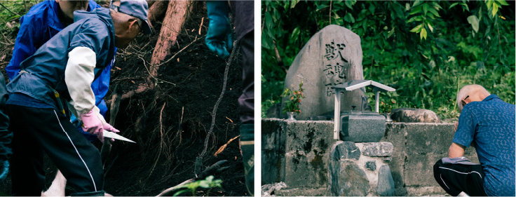 そして作業のあとには、必ず獣魂碑に線香をあげ、手を合わせる。