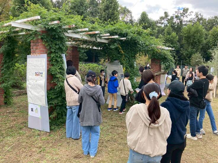 オリーブの森会場では、新檜尾台小学校4年生が、オリーブについて自分たちが調べたことをまとめて、ポスターセッションを行いました。