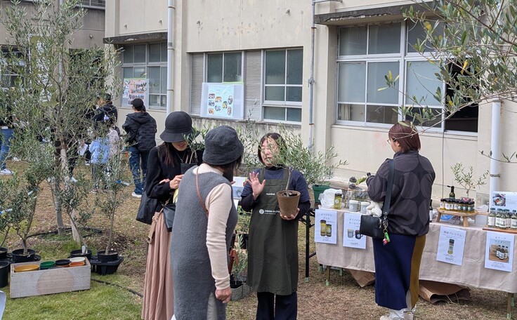 学校に来ていただき、オリーブを使ったキーホルダー作りを体験していただきます。