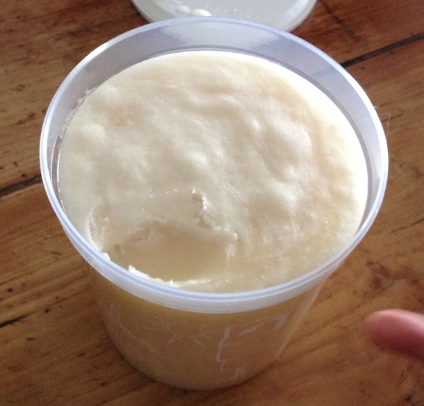 ハチミツが白いのは、蜜の結晶したため。香りに柑橘系の酸味があって、まさに見た目はレモンシャーベット。口の中でハチミツのコクと強いとろみに遭遇します。乳製品的要素が加わってフローズンヨーグルトに変化したかのよう。