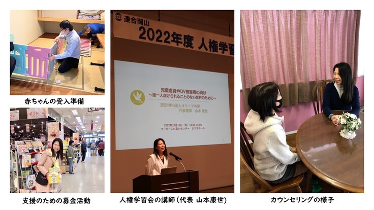 私たち認定NPO法人オリーブの家は、岡山県津山市に拠点を持ち、貧困母子家庭への支援活動、DVや虐待に悩む女性と子どもの一時保護、専門家による心のケア等の活動を行う団体です。