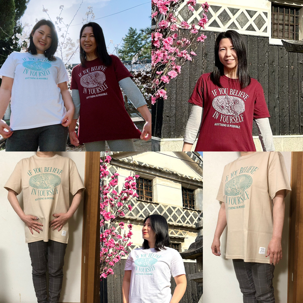 理事長山本は159cmでMサイズを着用、事務局山本は171cmでLサイズを着用、経理担当Mは150cmでMサイズ着用です🙆♀️