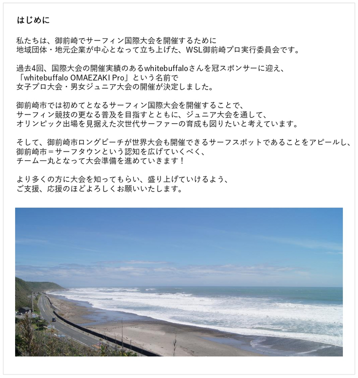 私たちは、御前崎でサーフィン国際大会を開催するために地域団体・地元企業が中心となって立ち上げた委員会です。