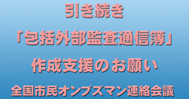 全国市民オンブズマン連絡会議では現在、包括外部監査通信簿への支援を18/5/2まで募集中です。