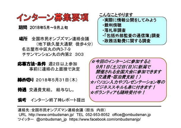 チラシ https://www.ombudsman.jp/office/intern2018.pdf